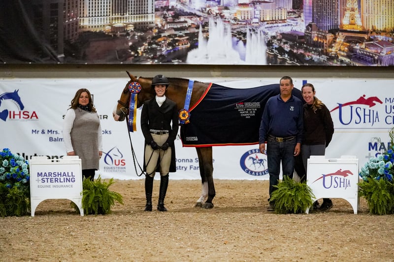 Las Vegas, Nev.—Nov. 17, 2025—The final day of the 2025 Marshall+Sterling/USHJA National Championships in Las Vegas brought an exciting close to a week of competition. The concluding schedule featured the final rounds of the Adult Amateur, Children’s, and Pony Hunter Championships; the USEF/USHJA Jumper Championships; and the Affiliate Jumper Championships.