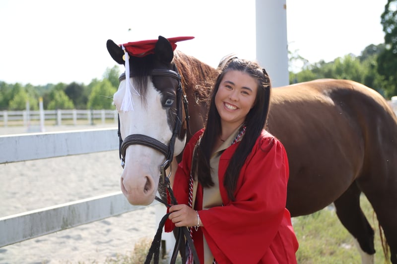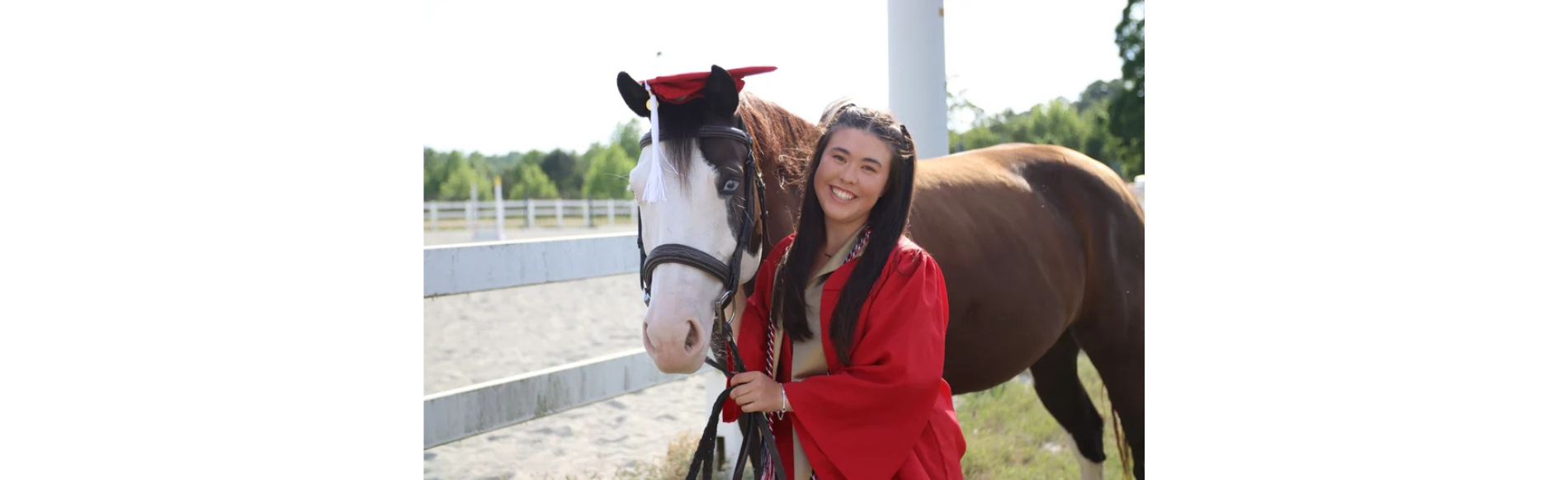 While still in high school, her passion for advocacy, inspired by USHJA webinars, led her to launch social media campaigns promoting mustang preservation, body positivity, and mental health awareness among equestrians. That same drive earned her the prestigious Park Scholarship at North Carolina State University, awarded for excellence in scholarship, leadership, character, and service.
