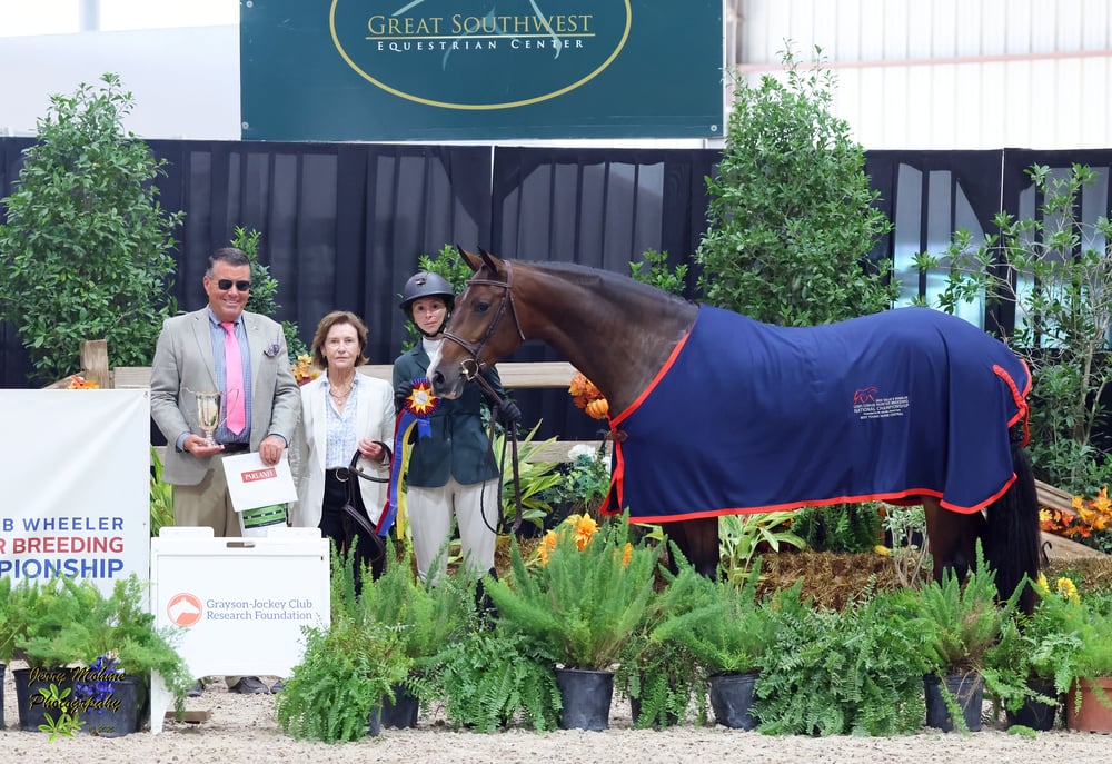 "I feel so blessed to win this Championship," exclaimed Tice-Grossmann of her win. "When Chuck and I buy a foal, we have hopes that he will develop to be competitive. But there are a lot of things that can go wrong. Sometimes they don't mature the way I expected them to, or about the time you think you just might have the winner, they get hurt."