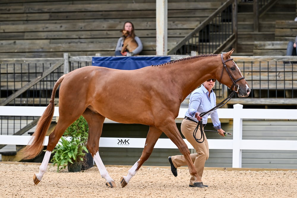 KWPN NA – Ultimae SPF (Small Social x Bentinov), a 2024 KWPN gelding owned by Barbara Bailey, handled by Abby Jeter, and bred by Tracy Geller/Six Pound Farm