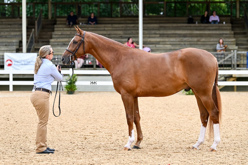 American Hanoverian Society – Riverside (Ribaldi x Mona Lisa), a 2022 Hanoverian gelding owned and handled by Hayley Raach and bred by Leanne Krick