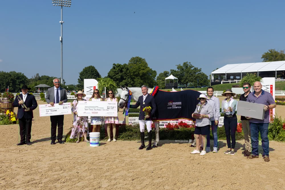 A longtime competitor in the USHJA Green Hunter Incentive Program, Stewart has now claimed the Championship title a record seven times, more than any other rider in the program’s history. His victories include six titles in the 3’/3’3” section and one in the 3’6”/3’9” section. For his efforts this week, he won $20,769 and was awarded the Bye for Now Perpetual Trophy donated in honor of Joey Darby.