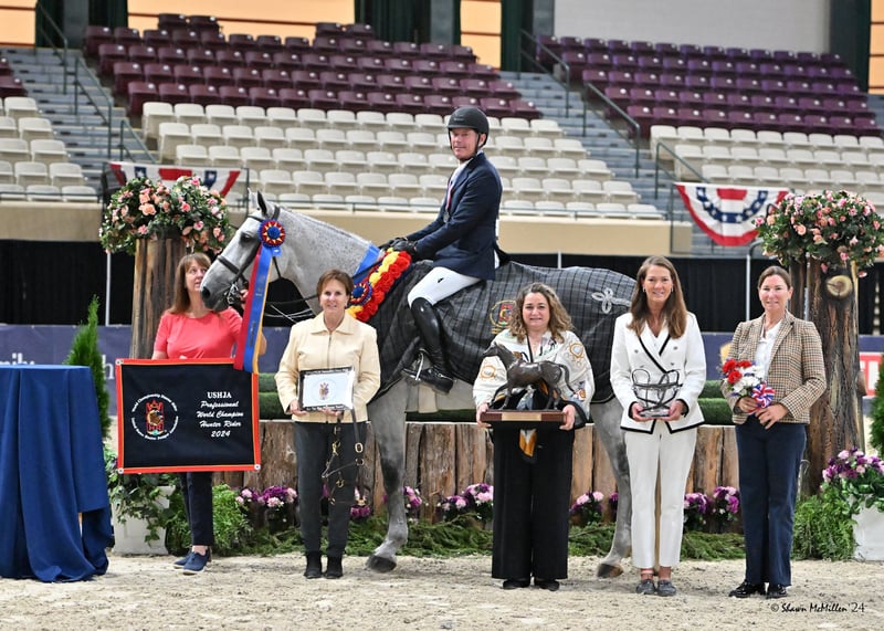Upper Marlboro, Md.—Oct. 8, 2024—With rides described as “a riding lesson,” “masterclass,” and “stunning,” Scott Stewart won the $30,000 USHJA World Championship Hunter Rider Professional Finals on Friday, October 4, at the Capital Challenge Horse Show in Upper Marlboro, Maryland. It was the eighth time Stewart had won the class, as he rode four unfamiliar horses to 90+ scores.