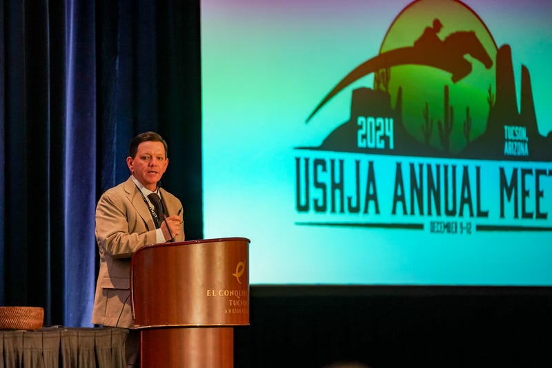 Tucson, Ariz.—Dec. 10, 2024—Setting the tone for a productive and inspiring week, the 2024 U.S. Hunter Jumper Association Annual Meeting continued in Tucson, Arizona, with the State of the Association address by President Britt McCormick. The address highlighted the USHJA's journey over two decades and moving forward with a renewed focus on member-driven progress, transparency, and sustainable growth.